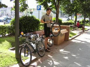 und nachmittags brauchten wir dann nur noch unsere Kartons am Flughafen abzuholen, in die Stadt zu transportieren, zum Hotel zu schleifen und die Räder aufzubauen (natürlich wars tatsächlich alles andere als einfach, allein die erneute Sicherheitsprozedur am Airport - mit dem sinnigen Kürzel "BIO" - konnte einem schon die Lust vergehen lassen).