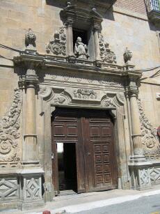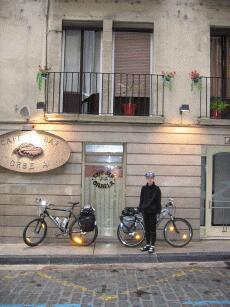 Am nächsten Tag machen wir uns mit den frisch montierten Fahrrädern auf den Weg zum sehr nahen Busbahnhof, von wo eine Direktverbindung nach Pamplona mit "La Union" besteht. Bereits bei vorsichtiger Annäherung an den wartenden Bus ergießt sich ein ungeheurer spanischer Wortschwall über den bereits sehr demütigen Pilger: Irgendetwas passt dem Busfahrer nicht und Busfahrer sind in Spanien - wichtige Lektion - fast Gott. Um es abzukürzen: Mit demontierten Vorderrädern und gut verzurrt nahm er auch die Räder mit und wir erreichten nach einer im wesentlichen verschlafenen Fahrt Pamplona. Im sehenswerten Busbahnhof bauen wir die Räder mal wieder zusammen und steuern das Kirchenbüro am Rande der Altstadt an, wo es das "Credential" also den Laufzettel gibt, den der Pilger sich unterwegs abstempeln lässt, um am Ende die begehrte Urkunde zu bekommen. Nicht nur bei dieser Art der Organisation kommen einem die Spanier irgendwie gründlich deutsch vor ...