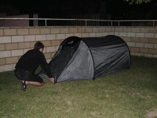 Wir streben weiter nach Los Arcos, wo es ein "Hotel Ezequiel" gibt - jeder, der "Pulp Fiction" gesehen hat, kann meine Gedanken nachvollziehen - welcher Vers war das noch mal ? Das Refugio ist allerdings mindestens ebenso grausig, zwar liebevoll von flämischen Camino-Freunden betreut, aber ansonsten grenzwertig, ein völlig vollgestellter Schlafsaal mit vielen lecker grün-plastebezogenen Etagenbetten - da kommt U-Bahn-Gefühl auf. Wir entscheiden uns spontan, neben zwei lustigen Holländern zu zelten. Diese sollten wir übrigens gelegentlich noch wieder treffen.