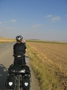Gut genächtigt geht es weiter - vorerst weiter bergab rollend. Vorbei an ausgedehnten Paprikafeldern, wo das Gemüse buchstäblich am Rande der Felder herumliegt erreichen wir die Provinz Burgos.