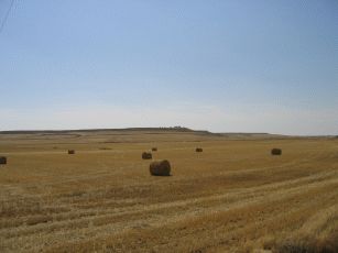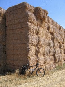 Über die Felder und an riesigen Strohballentürmen vorbei erreichen wir ein weiteres Refugio in der alten Schule von Villafranca de Montes Oca. Der Ort hat nun wirklich nichts zu bieten, bis auf einen Truckstop, der dem Pilger eine preiswerte Verpflegung ermöglicht: Das übliche Frühstück kostet z.B. 2 € pro Person.