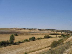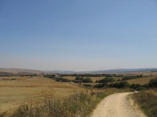 Nur ab und zu lockert ein kleines Dörfchen dieses Bild auf. Weiter bergauf und bergab geht es bald in der großen Hitze über ein unglaubliches Hochplateau. Als wird darüber hinweg sind geht es etwas bergab Richtung Castrojeriz.