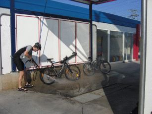Endlich bekommen die Räder nach all dem Staub etwas "frische Luft" und danach einen Schluck Öl, bevor wir am folgenden Morgen Burgos etwas wehmütig verlassen.