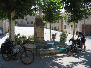 In der Vormittagshitze aber auf sehr guten Wegen geht es hier zügig voran, so dass wir die lange Etappe von über 70 km recht gut absolvieren - bis auf einen Fliegenüberfall auf der Strecke, ein wahrlich ekelige Angelegnheit.