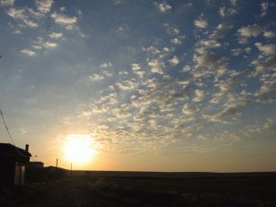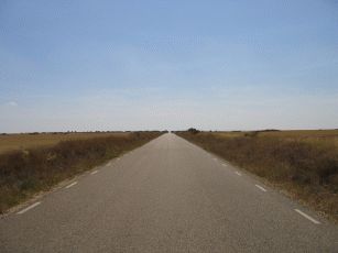 Calzadilla de la Cueza ist nun wieder einer der "toten" Orte unterwegs: Es gibt das Refugio, das sich durch einen kleinen Pool von anderen abhebt - sonst durch nichts. Und ein weiteres Hostal, in dem sich zwangsweise alles zu den Mahlzeiten trifft. Dieses Monopol lässt sich das Hostal folglich auch bezahlen. Eigentlich am schönsten ist also noch der Sonnenaufgang. Dann schnell weg. Wir wollen heute nach Burgo Ranero, denn dort soll das Refugio schön sein. Die Fahrt auf einem gut ausgebauten Weg geht zügig voran und wenig Besonderes an der Strecke lenkt ab.