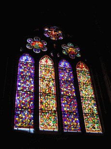 Wunderschöne Kirchenfenster sorgen für ein prächtiges Farbenspiel im Inneren. Wir besuchen eine Messe.