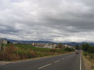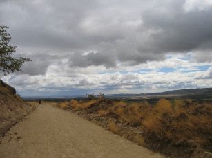 Raus aus Leon: Am nächsten Morgen müssen wir uns durch die Vororte aus der Senke heraus strampeln. Kaum oben angekommen erwischt und erstmals ein deutlicher Gegen- bzw. Seitenwind, der das Fahren beschwerlich macht.