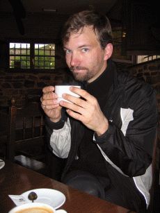 Völlig durchfroren frühstücken wir unter den freundlich-mitleidigen Blicken der Wirtin in Molinaseca im Schatten der alten Römerbrücke.